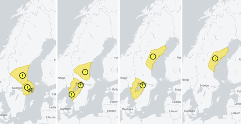Të enjten dhe të premten, situata mbetet e vështirë përgjatë bregut të Norrland, nga Hudiksvall deri në Skellefteå, ku borë dhe erë mund të shkaktojnë probleme të mëdha në trafik. Priten midis 15 dhe 30 centimetra bore.